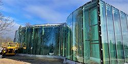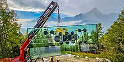 Transport de panouri de sticlă la o înălțime de peste 30 de metri