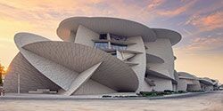 Montajul complicat de panouri de sticlă la Muzeul Național din Doha (Qatar)