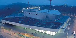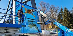 Montajul complicat la muzeul schiului Holmenkollen din Oslo (Norvegia)
