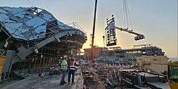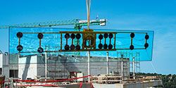 Montarea lamelor de sticlă cu o greutate de 3000 kg la Etihad Museum (Dubai)
